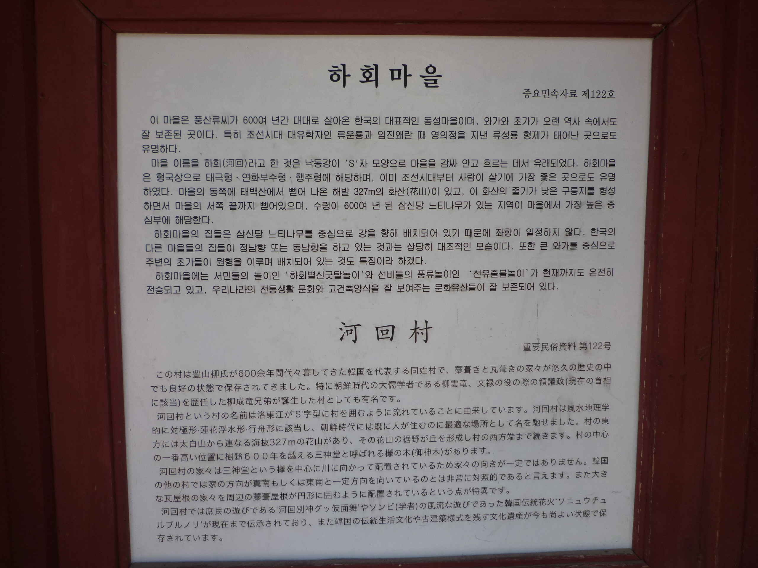 경북 안동시 풍천면 하회리 하회마을