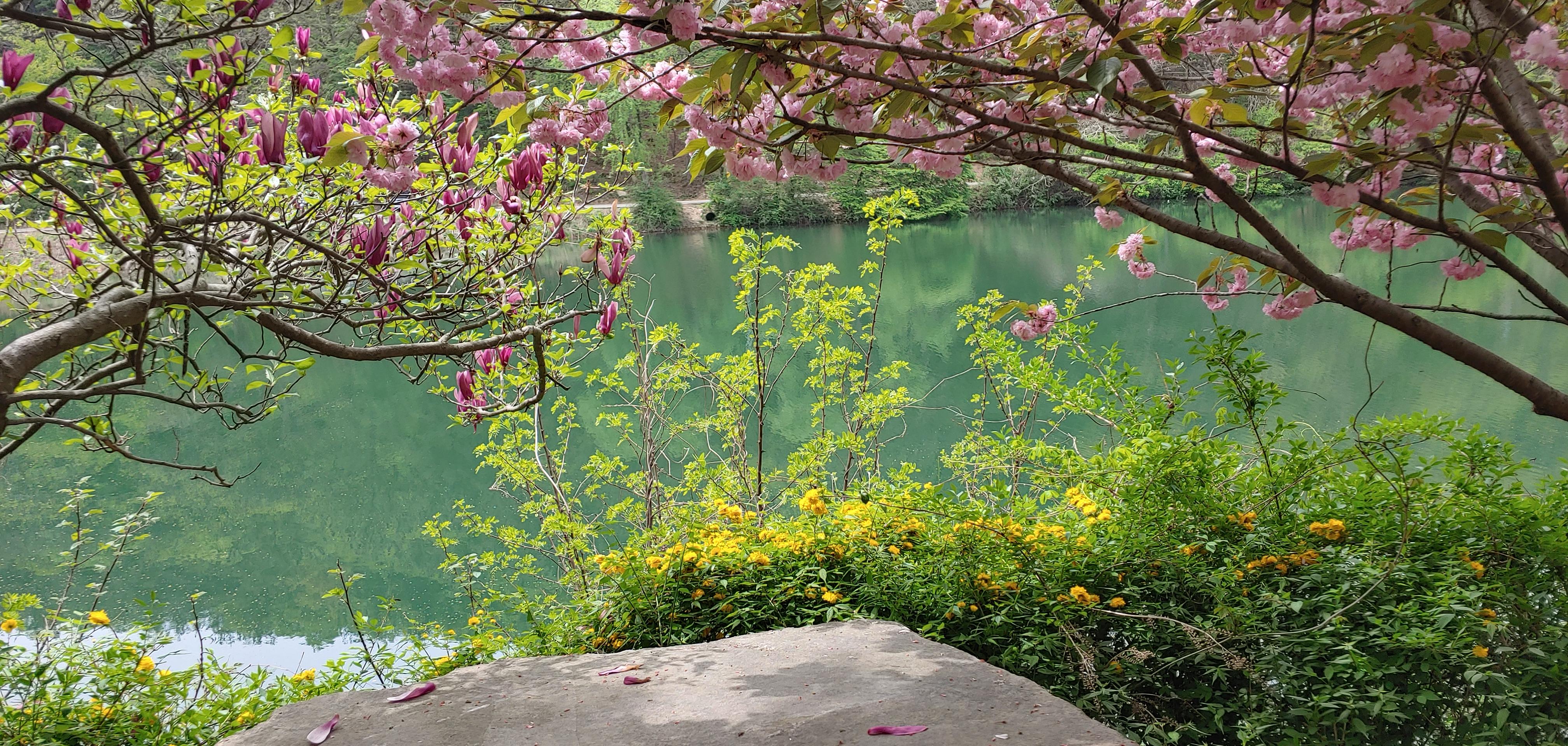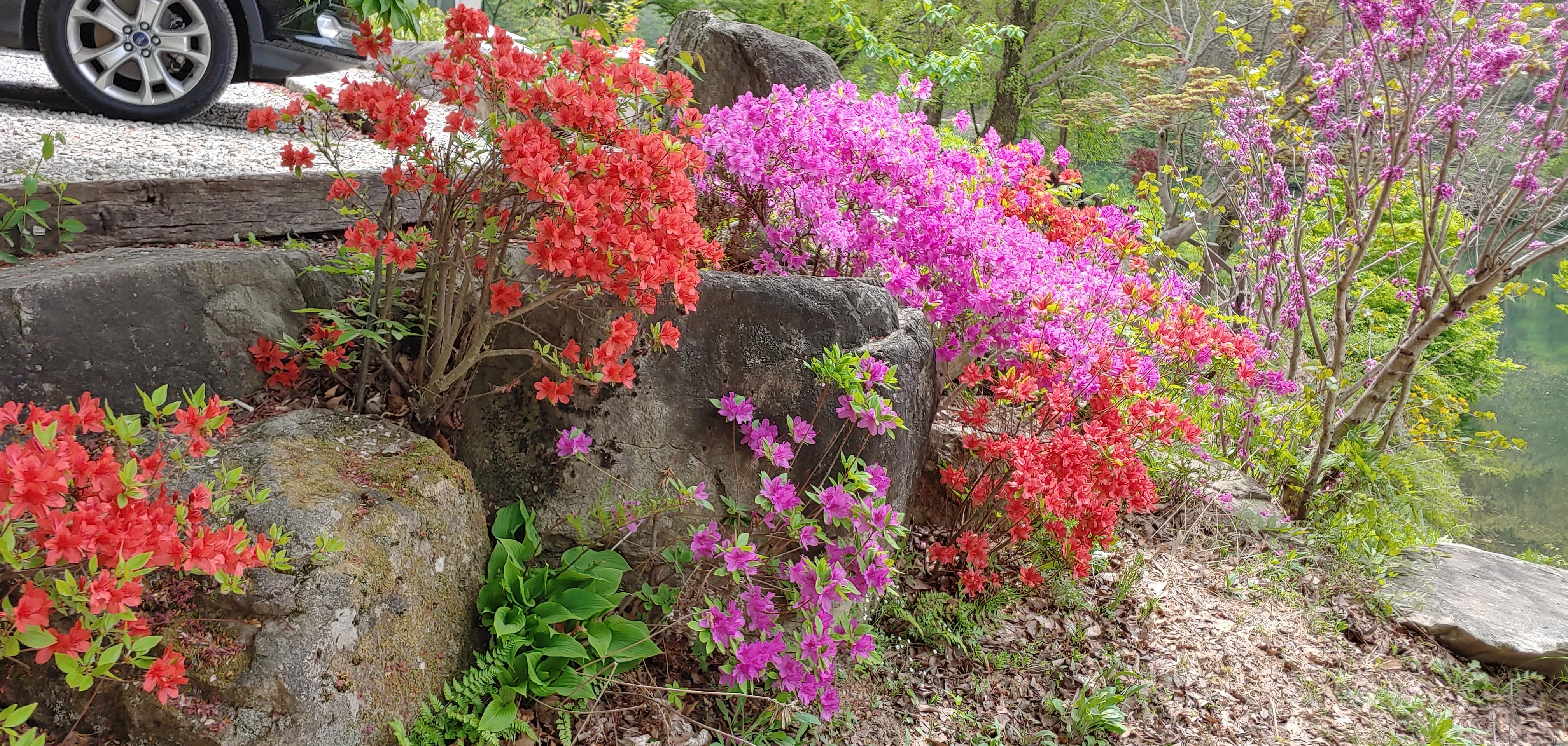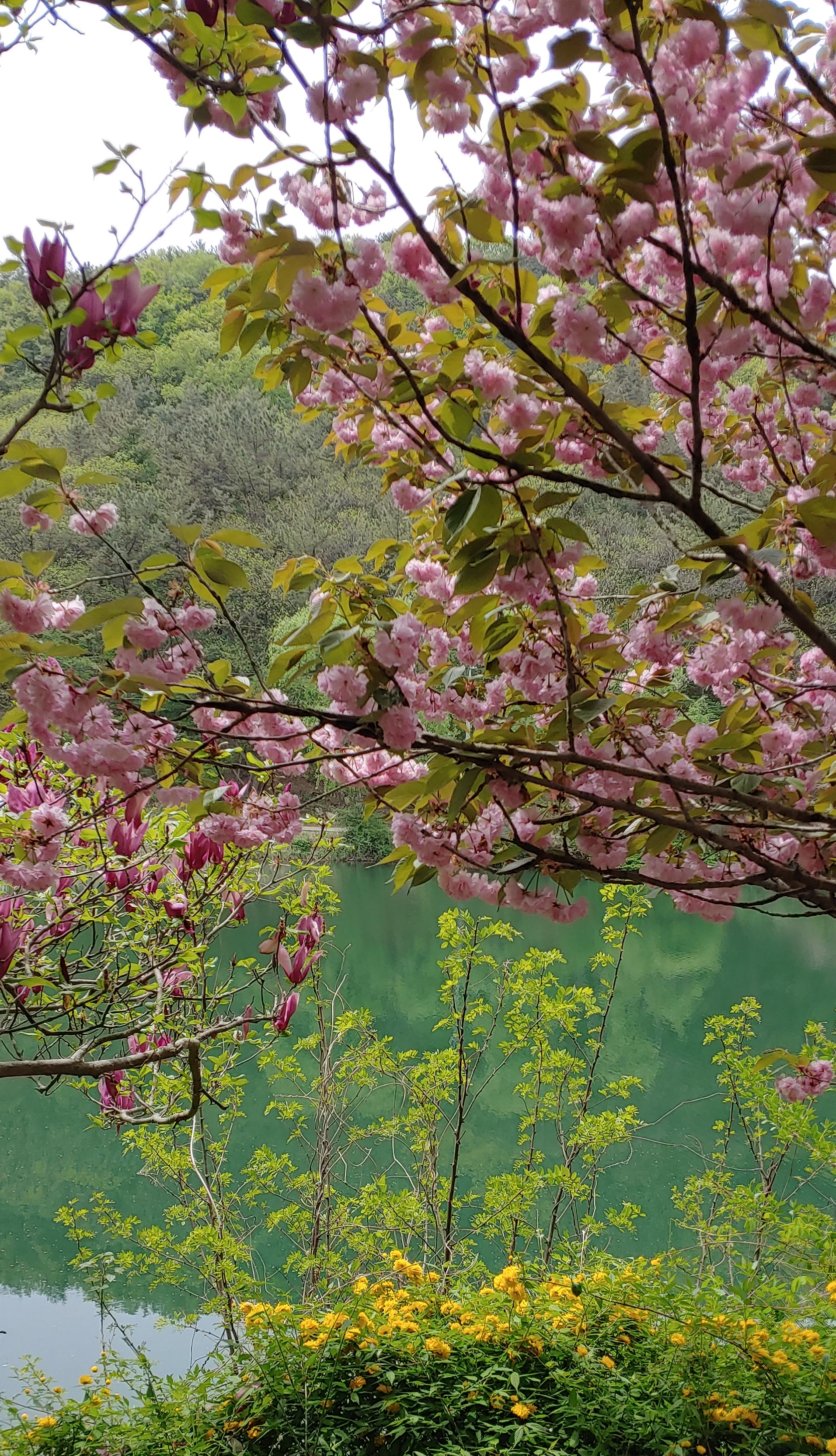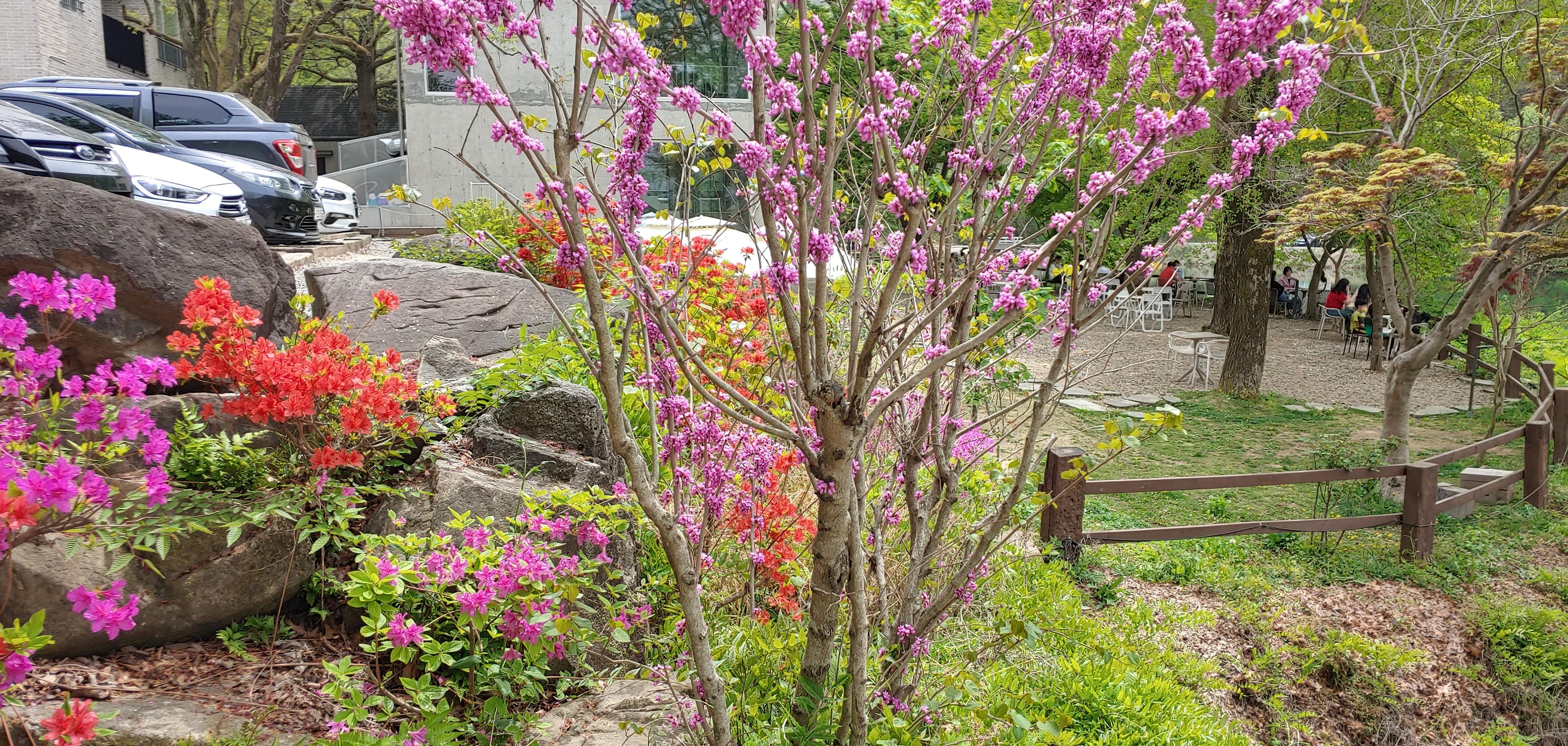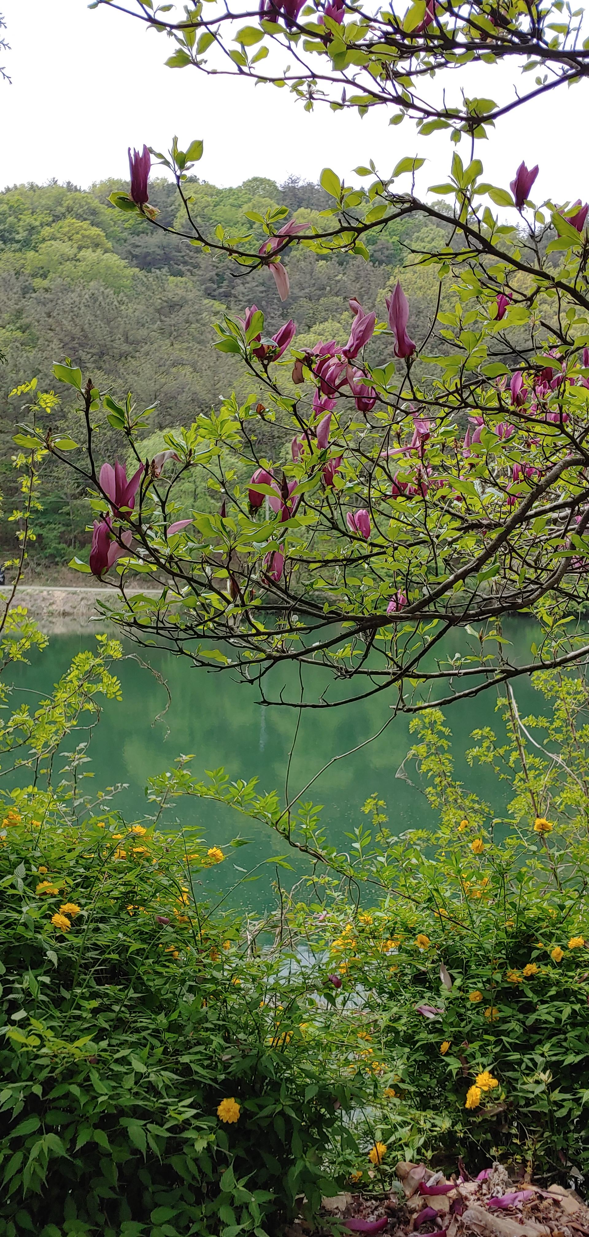 황매화 겹벚꽃 자색 목련