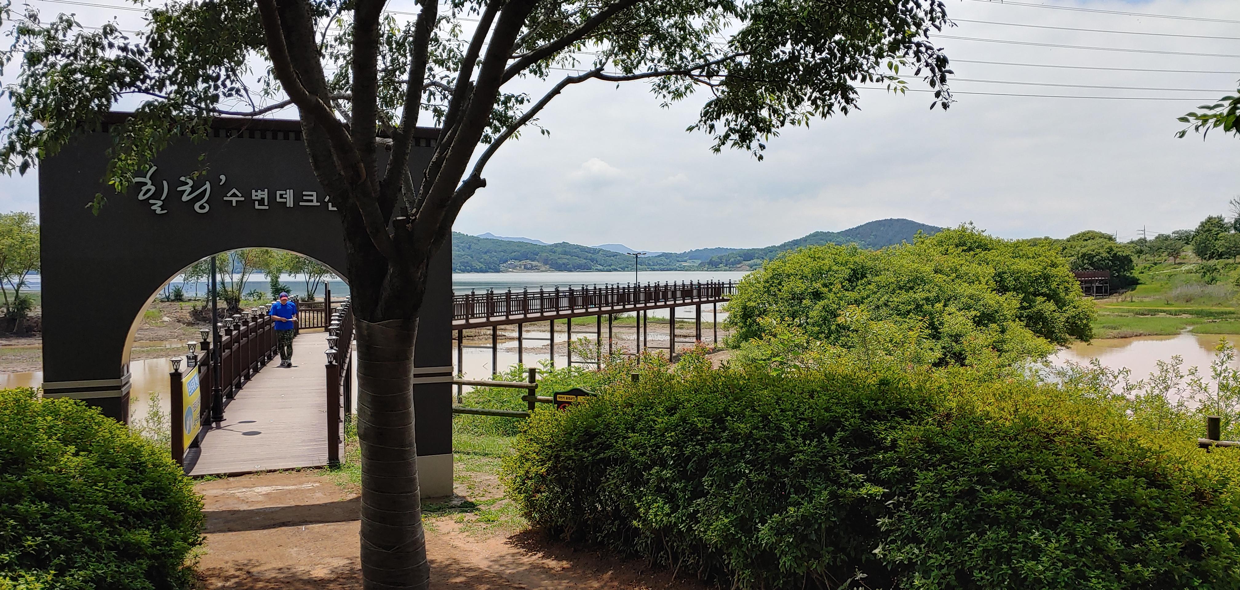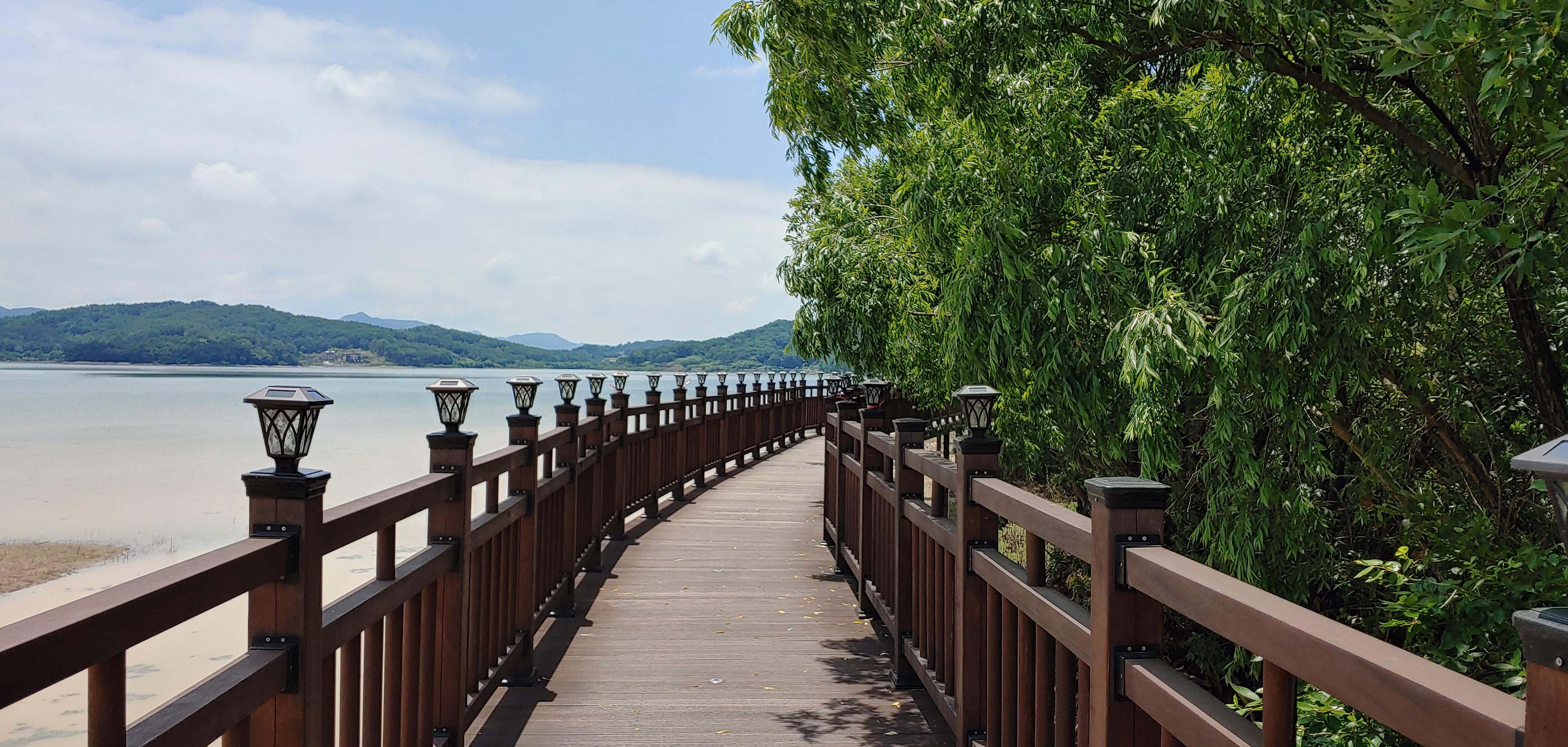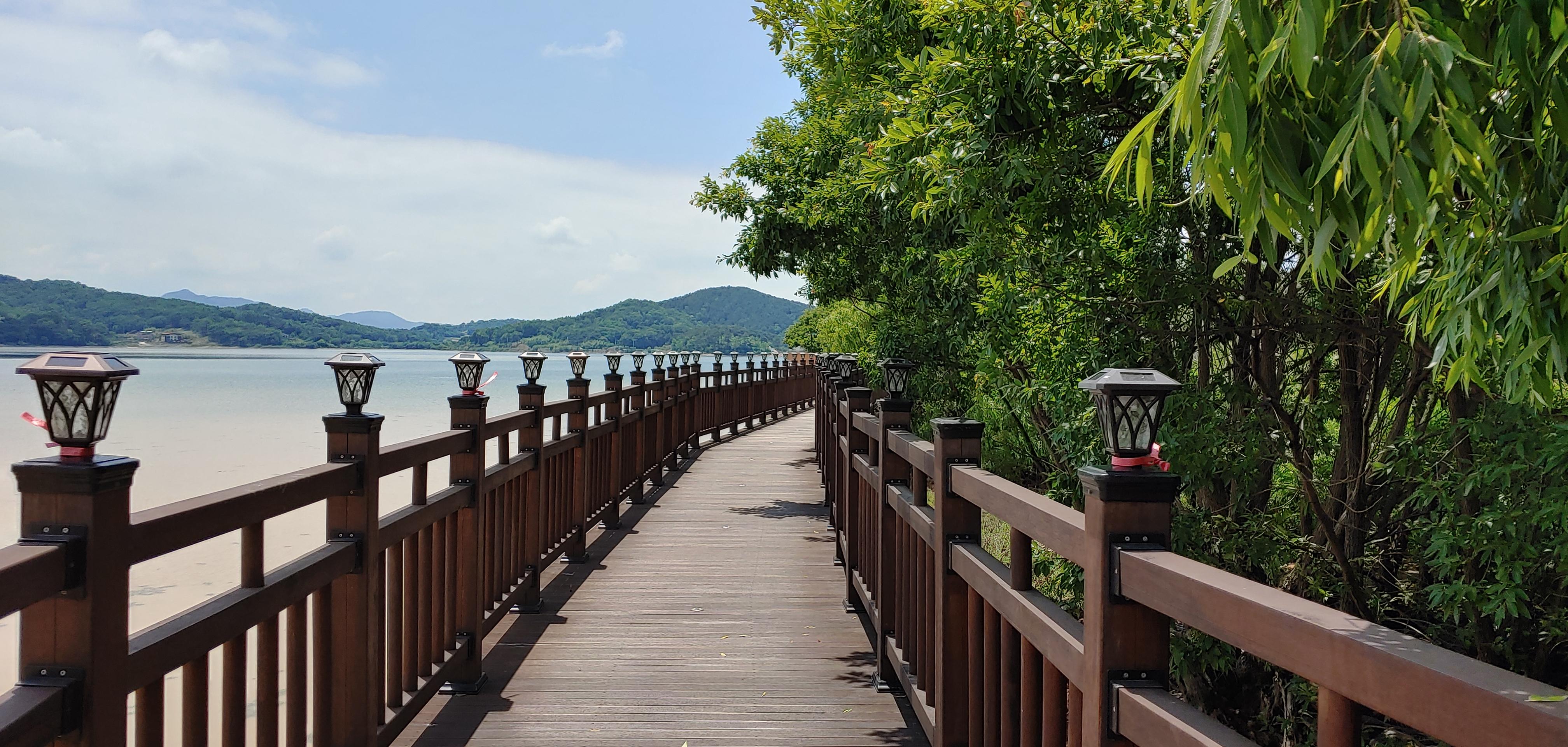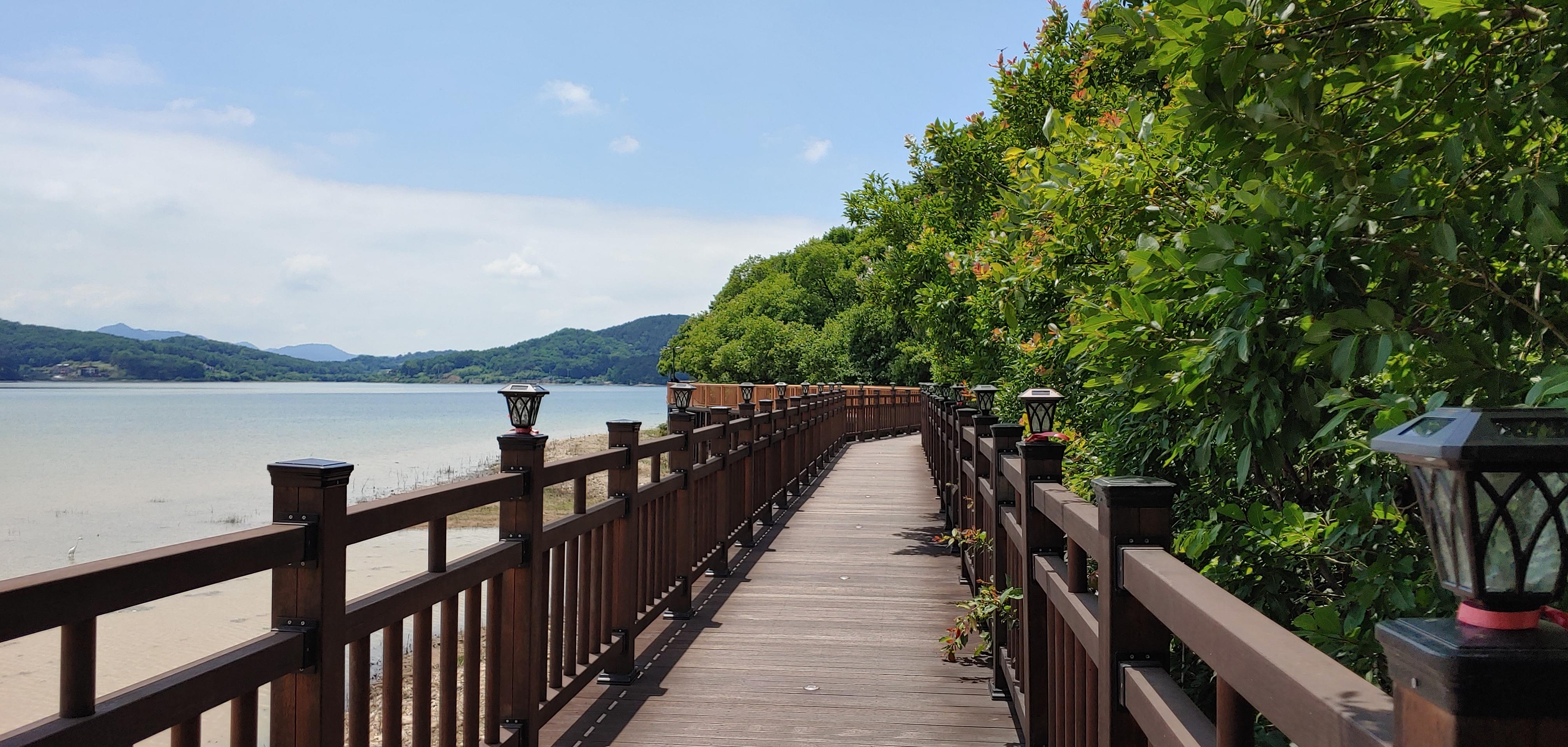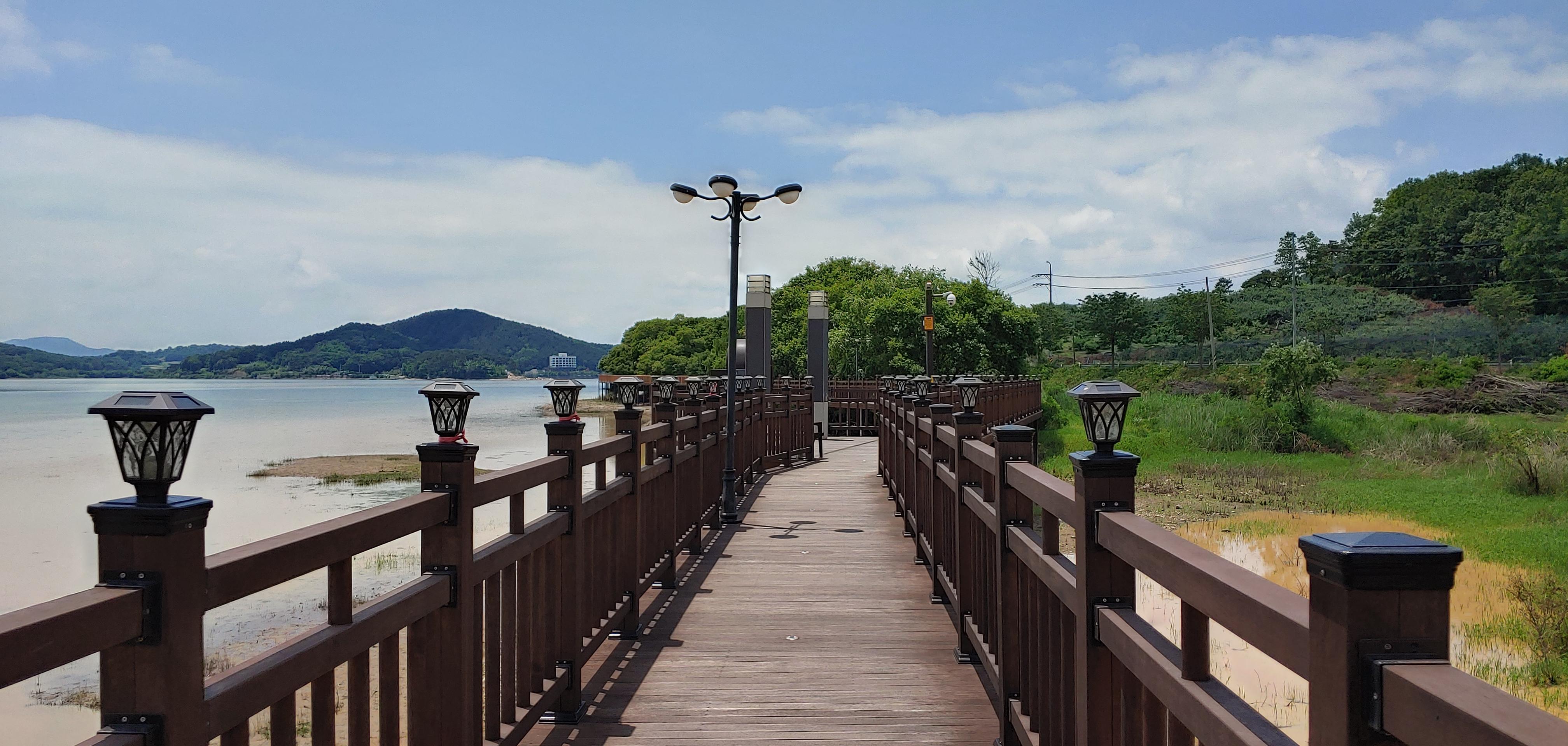 탑정호의 수변데크길을 걸으며 자연과 함께 힐링할 수 있다.
